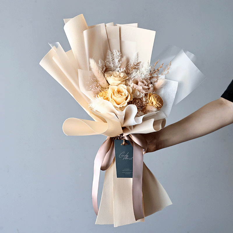 *永生花的保存期限約為1~2年、乾燥花約為半年至1年。好好照顧可以更久唷!